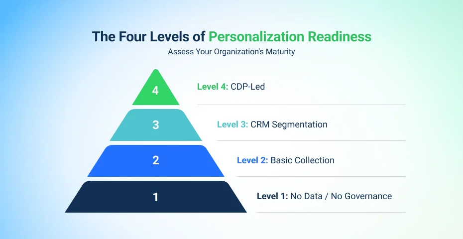 Before diving into new tools or tech stacks, it helps to know where you currently stand on the personalization maturity ladder.